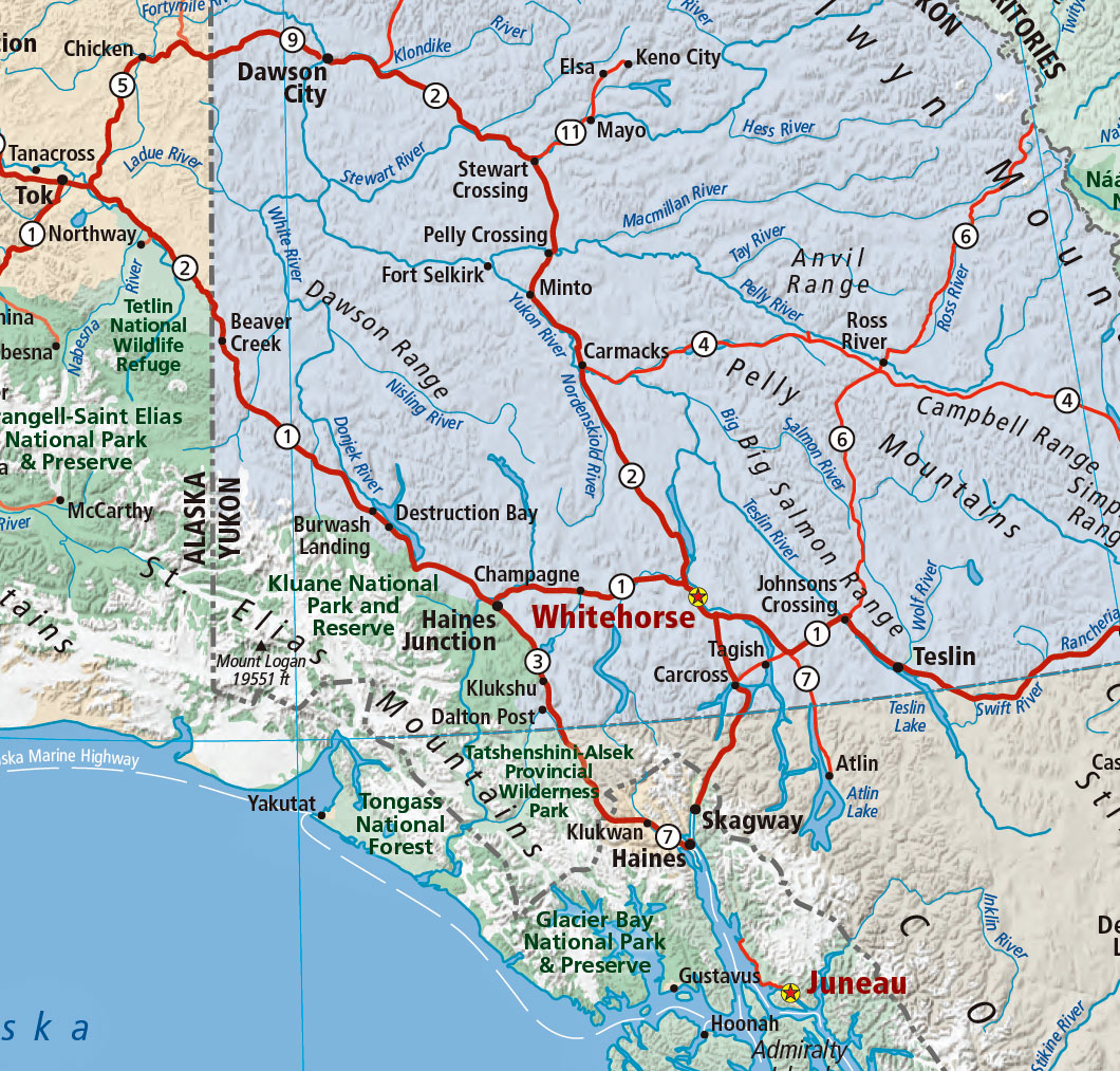 Vorschlag für eine Rundtour mit dem Ausgangs- und Endpunkt Whitehorse