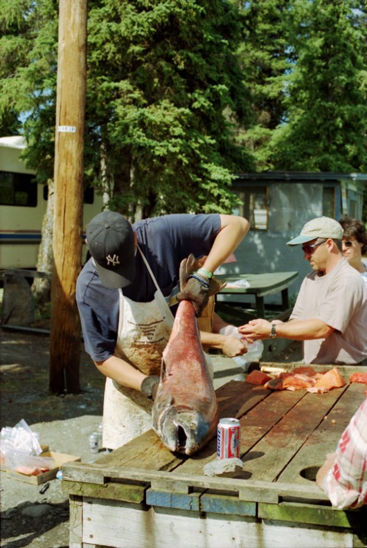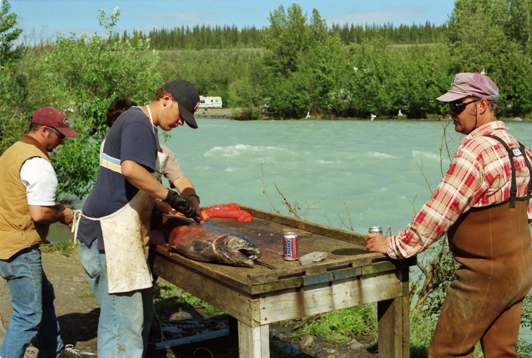Rotlachse werden am Klutina River gefangen und sofort zerlegt.