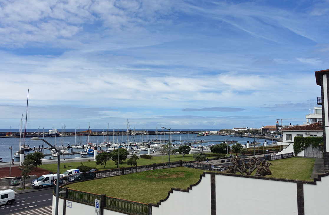 In Capelas beenden wir die Fahrt an der Nordküste entlang und fahren wieder nach Ponta Delgada zurück. Das Auto stellen wir vor dem Hotel ab und geben den Schlüssel an der Rezeption ab. Mario wird ihn wieder dort abholen.