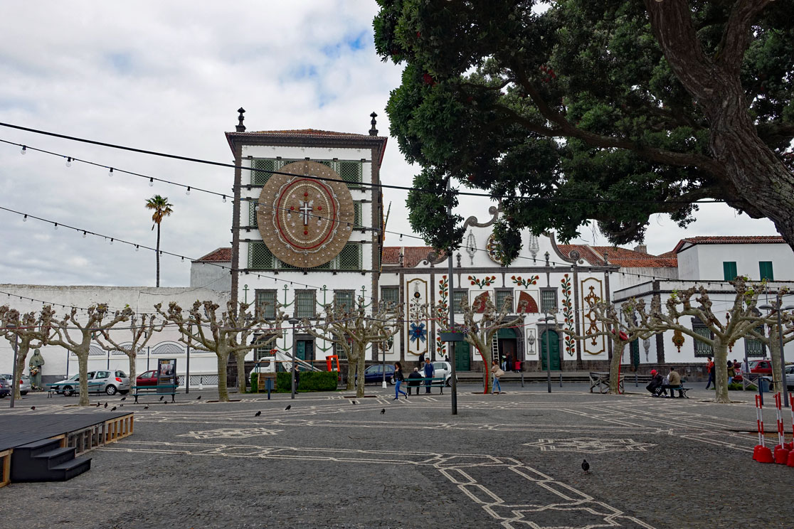 Um 9:10 Uhr fahren wir ab, aber nicht nach Sete Cidades, wie es im Programm steht, sondern Hugo erklärt uns, dass er die Tagesprogramme verschoben hat, weil er in den Wetterbericht geschaut hat und dass er gern für uns die Möglichkeit schaffen will, heute Nachmittag gegen 16:00 Uhr zurück zu sein, damit wir am Abend das Einschalten der Lichter zur Festa do Senhor Santo Christo dos Milagres miterleben können und danach am Sonntagnachmittag die Prozession durch die Stadt besuchen können. Damit sind wir natürlich sehr einverstanden, zumal er davon schwärmt, das sei das größte Fest auf den Azoren und wir sollten das unbedingt miterleben.