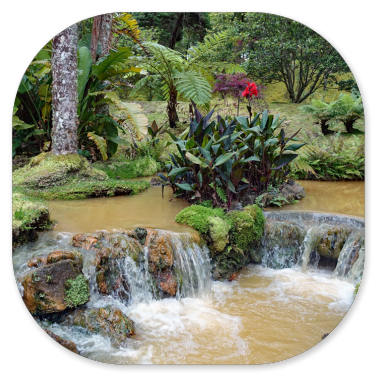 Caldeira Velha. Das ist ein Naturschutzpark mit heißen Quellen und