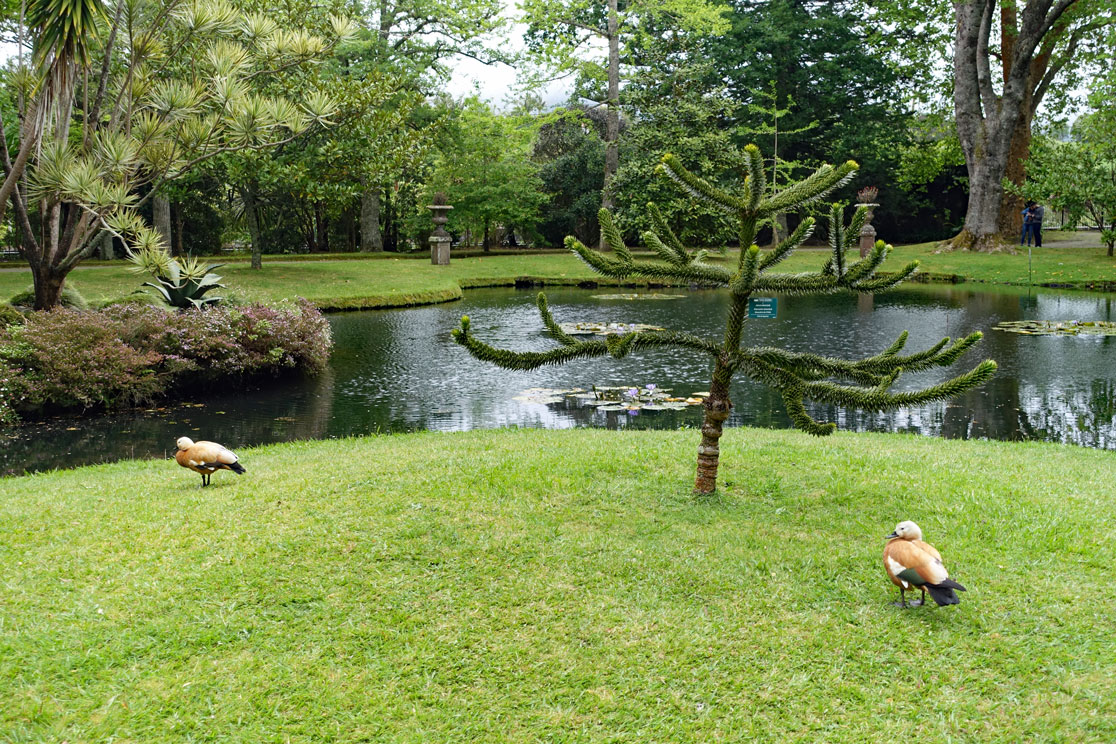 Nach dem Bad machen wir einen Spaziergang durch den Terra Nostra Garden, der als Botanischer Garten schon 1775 angelegt und 1882 ausgebaut wurde. Seit 2009 ist er eine Attraktion für Naturliebhaber und beherbergt viele exotische Pflanzen und mehr als 3000 Bäume. Überwältigend ist natürlich die Anzahl von 600 verschiedenen Kameliensorten, unwahrscheinliche Mengen von Azaleen und Rhododendren. Beim Spaziergang durch den schön gestalteten Park wird uns wieder bewusst, dass wir in der falschen Jahreszeit hier sind. Für diesen Garten muss man im März hier sein, wenn die Kamelien und Azaleen blühen. Wir nehmen uns vor, diesem Park noch einmal an unserem freien Tag einen Besuch abzustatten, denn es gibt wunderschöne Spazierwege hier.