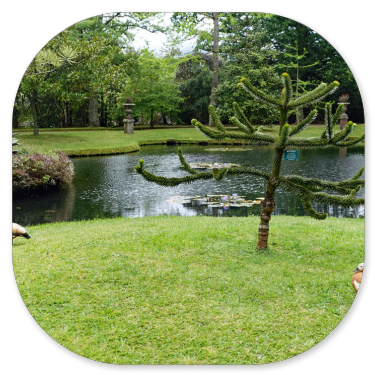 Es ist ein kunstvoll gestalteter Park mit vielen blühenden Blumen, exotischen Bäumen und vielen Picknickplätzen.