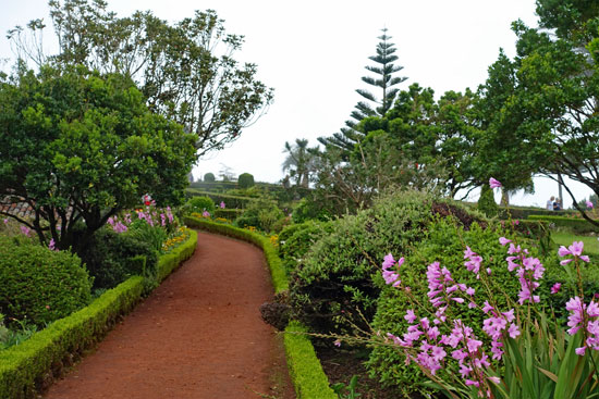 Uns gefällt dieser Garten sehr, der von Antonio Borges gestiftet und angelegt worden ist. Er war der erste und wohl erfolgreichste Ananasbauer der Insel. Die Bäume wurden im 19. Jahrhundert gepflanzt und haben heute riesige Ausmaße. Alles ist dicht und von Moos überwuchert. Viele Treppen und Wege führen zu versteckten Plätzen und Grotten. Kein Wunder, dass dieser Garten zum Lieblingsziel von verliebten Pärchen geworden ist, die hier einen romantischen Spaziergang machen oder sich einen Abend im Mondlicht vorstellen. Genügend Parkbänke sind vorhanden und wir können jedenfalls viele Teenager aus den benachbarten Schulen beobachten, die hier ihre Mittagspause verbringen. Außerdem sind viele Muttis mit Kinderwagen auf dem Spielplatz.