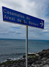 Auf dem Weg entlang der Steilküste nach Süden kommen wir in den Ort Pedreira und kurz darauf zu einem wunderschönen Aussichtspunkt, dem Miradouro da Ponta do Sossego, einem "Ort der Stille und des Friedens", wie Hugo uns das Schild übersetzt.