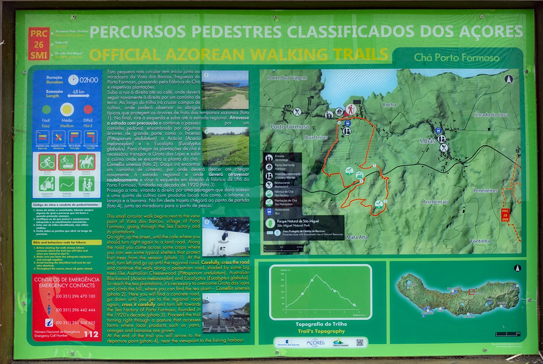 Ein Stückchen weiter halten wir am Parque National da Ribeira dos Caldeirões mit vielen Wasserfällen und Mühlen. Alles ist sehr schön angelegt als Ausflugsziel mit vielen Spazierwegen und guten Beschriftungen. Ein Highlight als Touristenattraktion ist es natürlich nicht. Wir stellen allerdings fest, dass die gesamte Nordküste für Wanderwege hervorragend erschlossen ist. Überall stehen Schilder mit Hinweisen auf Ortschaften oder Sehenswürdigkeiten.