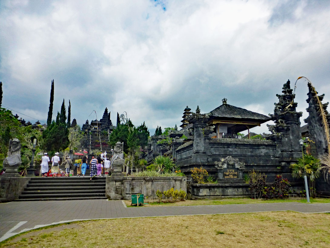 Anschließend geht es über die schmale Serpentinenstraße weiter nach Besakih. Für 35000 Rupien dürfen wir zum Tempel hinauf, der an der Flanke des höchsten Bergs von Bali liegt und angeblich schon im 8. Jahrhundert als Heiligtum dient.