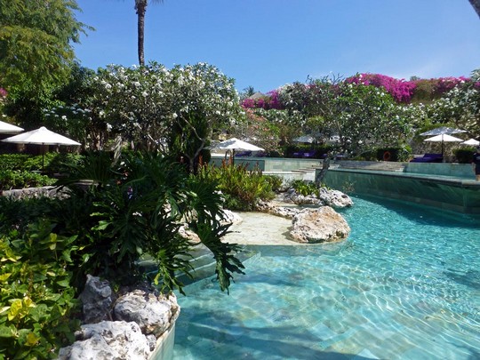 Die Hotels (Grand Hyatt, Laguna, Meliá oder Westin) haben ganz schöne Poolanlagen, aber entweder sind diese fast leer oder lautstark beschallt und bevölkert. Vor allem vermissen wir innerhalb der Anlagen die Blütenpracht, die wir vom Ayana gewohnt sind.