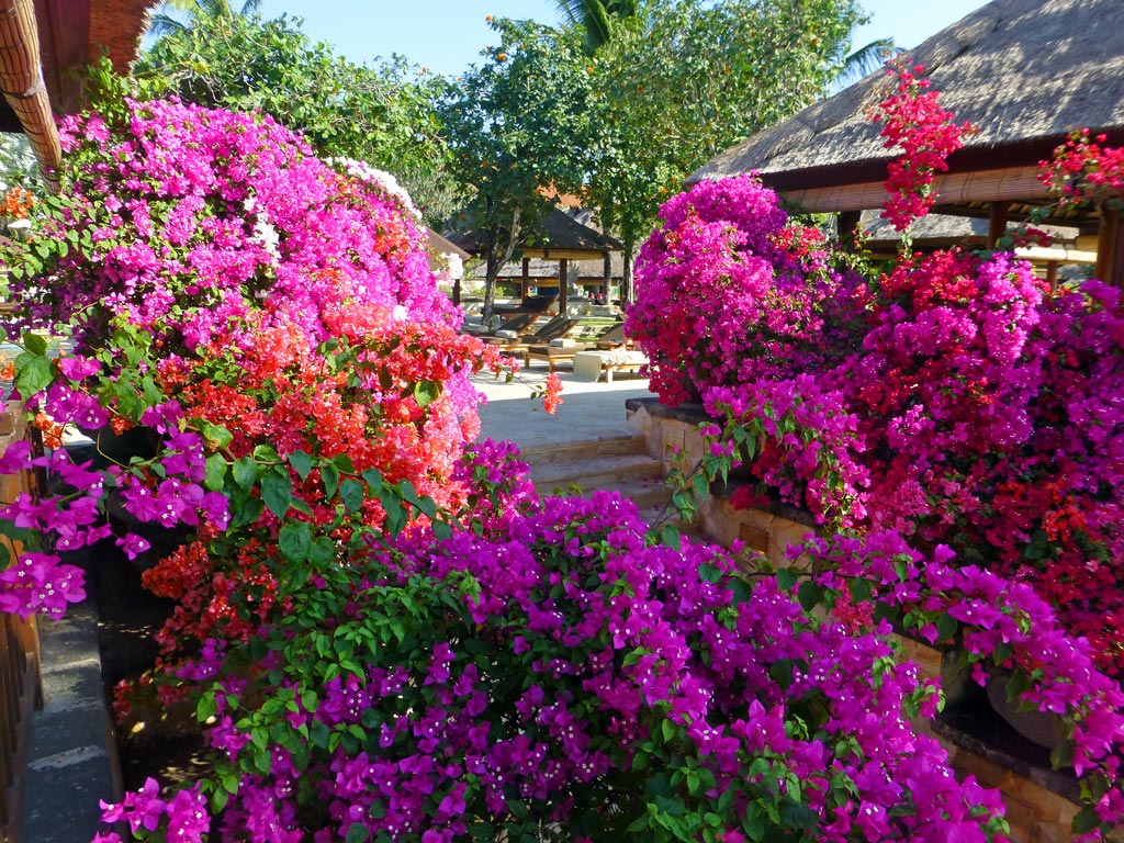 Überall in der Anlage blühen Bougainvilleas, Plumerias und Orchideen