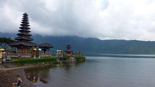 Kerji zieht hier oben in den Bergen seine Jacke an, weil es ihn fröstelt. Wir finden die 20°C wunderbar erfrischend. Als wir am Bratan - See ankommen, warten dort schon viele Schulklassen und Pilgergruppen am Eingang. Uns erscheint die Tempelanlage wie ein großer Kinderbelustigungspark. Es sind nämlich Kinderspielplätze hier, man kann Tretboote mieten und findet große Liegeflächen am See.