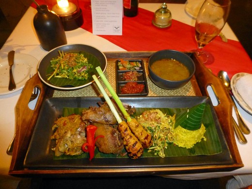 satay lilit bebeck, sambal matah acar (unterschiedlich gewürzte
