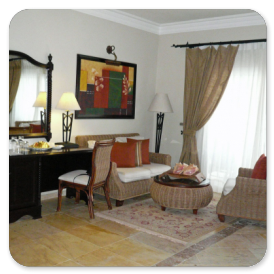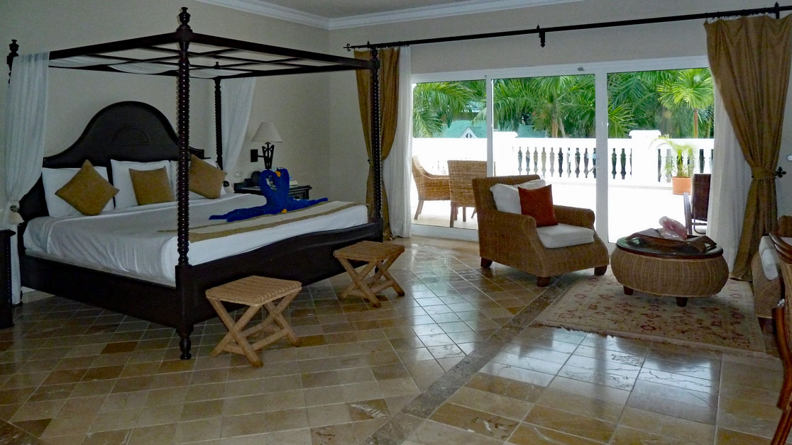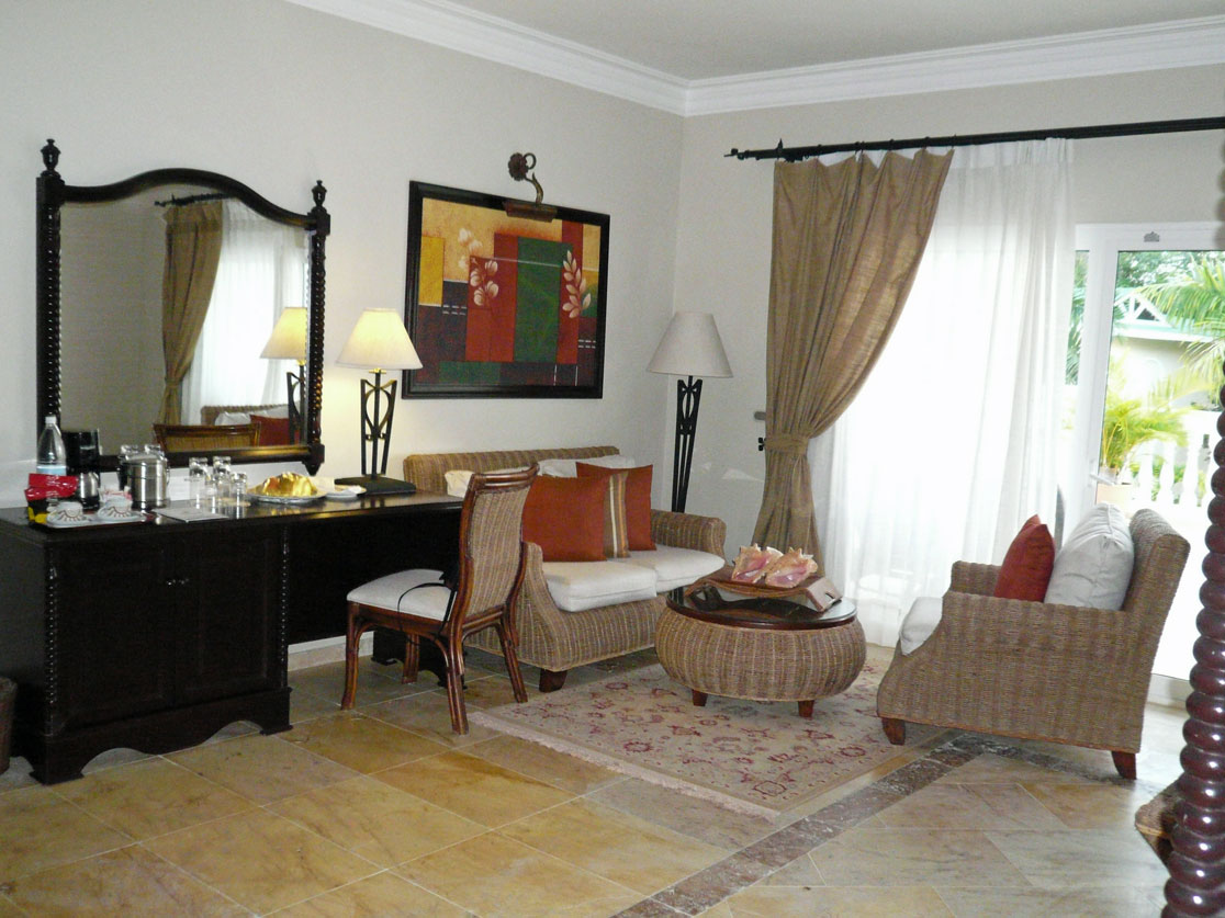 Spätestens bei der Ankunft mit Erfrischungstüchern, dominikanischen Folkloretänzen und livrierten Gepäckträgern mit Tropenhelmen wird deutlich, dass das einzige Hotel dieser Insel seinen 5-Sterne-Status betont. Das kann man auch ohne Einschränkungen bestätigen, wenn man die Zimmer betritt, die mit den beigefarbenen Marmorfußböden einen angenehm kühlen Eindruck vermitteln.