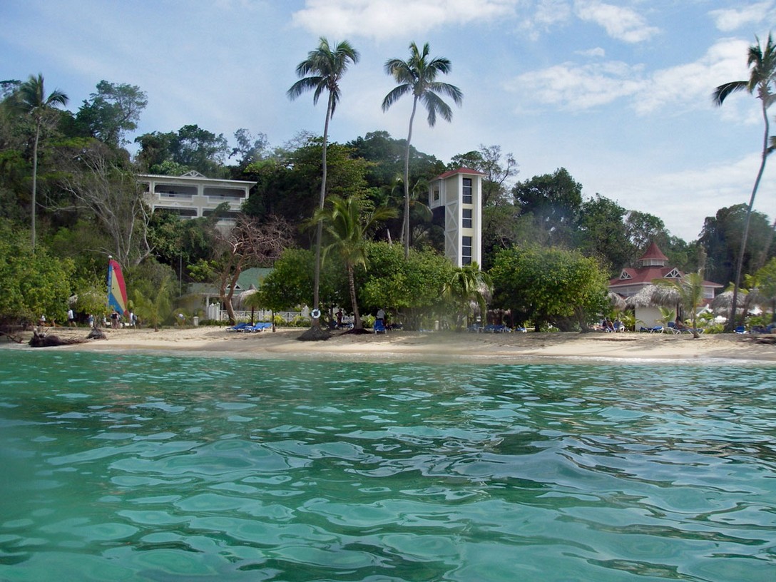 Blick auf den Bacardi-Strand bei der Anfahrt mit dem Schnellboot