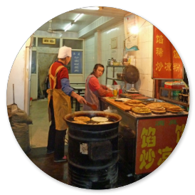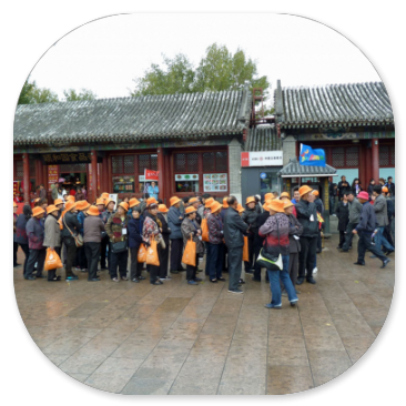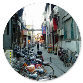 Hutong ist ein mongolisches Wort und bezeichnet eine Gasse. Vor einigen Jahren gab es in Peking noch sehr viele solcher Gassen, aber die wurden alle abgerissen und durch neue Häuser ersetzt. Auch das Altstadtviertel, durch das wir jetzt mit einer Rikscha fahren, wird in zwei Jahren abgerissen, erklärt uns Liu. Aber jetzt sieht es in der Tat noch so aus, als fühlte man sich in das alte China versetzt Die Gassen sind in der Tat sehr eng und vollgestellt mit Fahrrädern, Rollern, Karren und Autos, die irgendwo etwas abladen oder aufladen. Natürlich sind auch wieder versteckte Hauseingänge, seltsam riechende Garküchen, exotische Verkaufsstände und abenteuerlich verlegte Elektroleitungen zu beobachten.