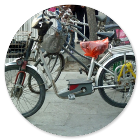Es sind erstaunlich viele Frauen damit unterwegs, die vorne und hinten Einkaufskörbe haben. Viele fahren auch zu zweit auf diesen Dingern; die sind dann supermodern mit einem Computer ausgerüstet, klein und handlich und haben hinten einen Sitz für die Ehefrau.