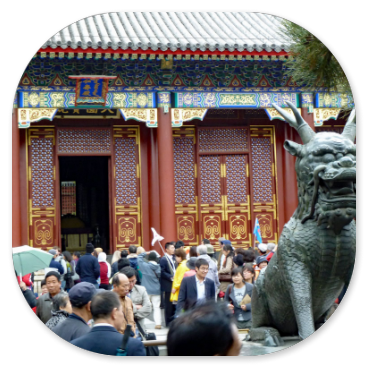 Hier opferte der Kaiser auf dem Himmelsaltar in einer Pagode, die ganz aus Holz erbaut ist und 28 m hohe Holzsäulen besitzt. Mehr als ein alter Altar ist im Innern auch nicht zu sehen, das man gar nicht betreten darf.