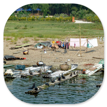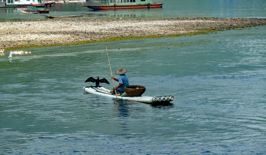Wir müssen nur immer lachen, wenn ein anderes Boot vorbei kommt und die Chinesen uns durch ihr Winken zum Lachen auffordern. Die Boote sehen zwar nicht gerade so aus wie die Gondeln in Venedig, aber die Chinesen stellen sich das halt so vor. Und wir lachen natürlich auch.