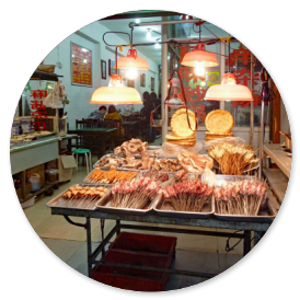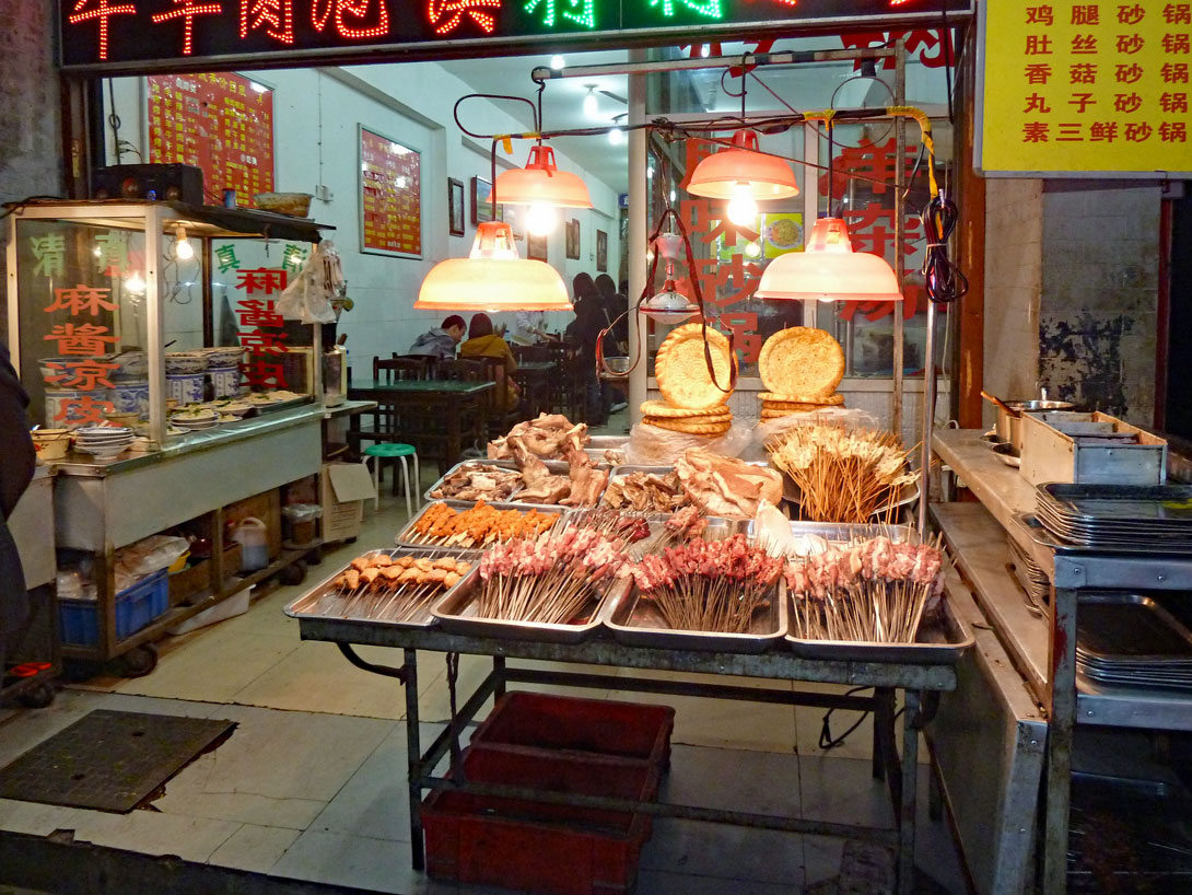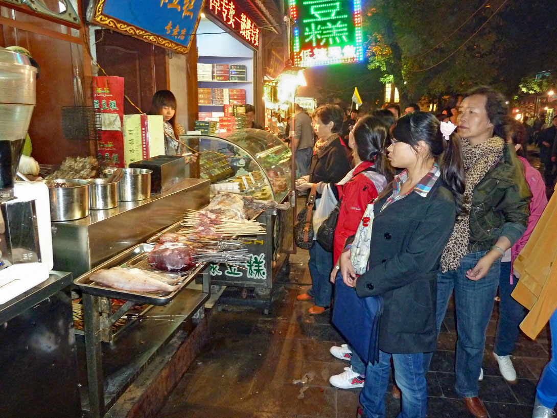 Wir fahren am Abend in die Altstadt, die wunderschön beleuchtet ist. Die Chinesen haben eine Vorliebe für bunte Beleuchtung, rote Laternen, blinkende Lichter und allerlei Lichteffekte. So schmückt halt jeder sein Haus oder seinen Verkaufsstand mit irgendwelchen Lichterschlangen. Das sieht natürlich toll aus.