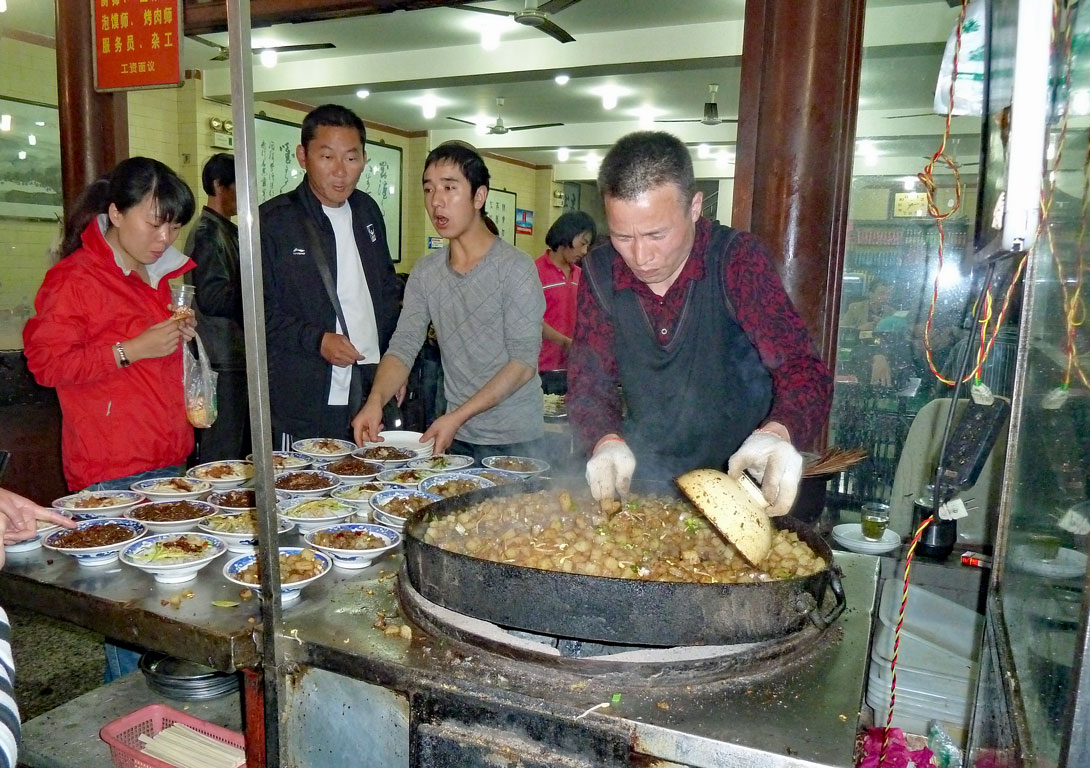 Die Suppe isst man zum Schluss und den Reis nur als Häppchen, wenn man alles andere gegessen hat. Das chinesische Bier ist dünn (2,8 % Alkohol) und etwas gewöhnungsbedürftig. Aber preiswert ist das Essen natürlich.