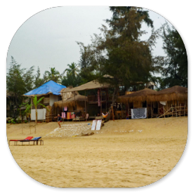 Einen Kilometer weiter nördlich kann man über die Felsen zum Nachbarstrand klettern, der mit den primitiven Hütten noch ein bisschen von dem alten Hippie-Flair aufweist, das hier mal so kennzeichnend für Goa war. Leider macht das Klettern über die Felsen keinen Spaß, weil überall die Sch...haufen von den Arbeitern hier liegen, die zwischen den Felsen ihre Notdurft verrichten.