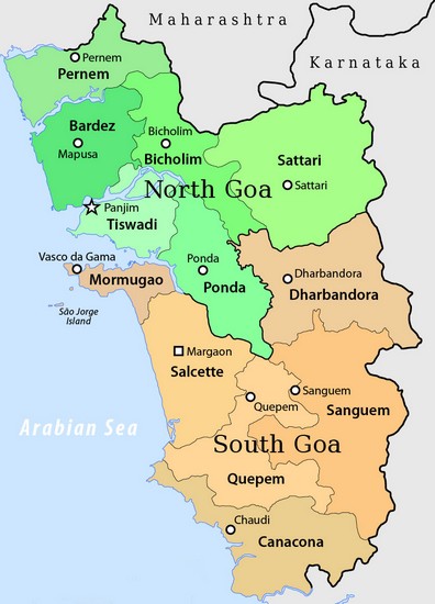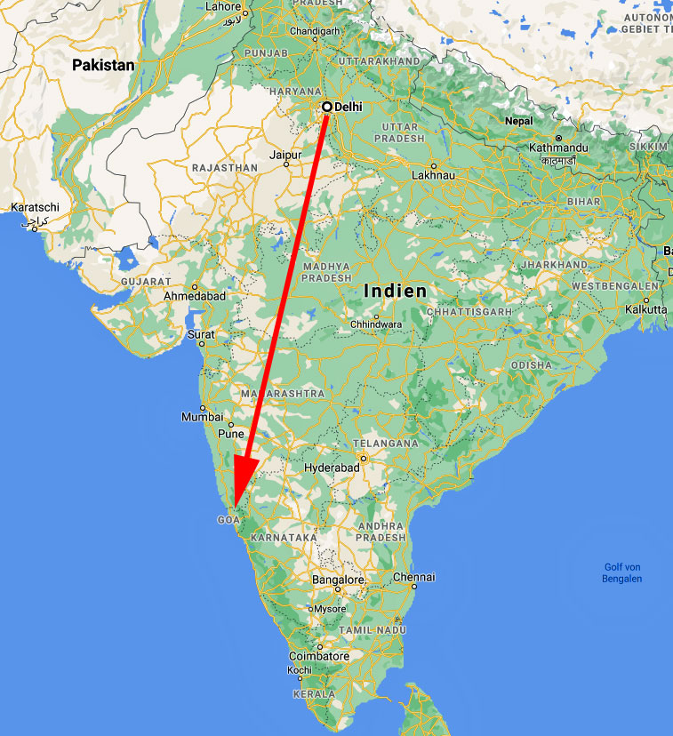 Goa ist der kleinste indische Bundesstaat. Er liegt an der mittleren Westküste Indiens, wie man auf der Karte sehen kann. Es hat nur etwa 2 Millionen Einwohner und war rund 450 Jahre lang portugiesische Kolonie. Das zeigt sich deutlich an dem hohen Anteil der Katholiken und der besonderen Kultur. Flächenmäßig ist Goa ziemlich klein - es hat nur eine Ausdehnung von Norden nach Süden von 105 km und von Westen nach Osten von 65km.Das Klima ist tropisch und vom Monsun bestimmt. Es gibt viele Kokospalmen und andere Pflanzen, die in den Tropen vorkommen; im Verhältnis zum übrigen Indien ist der Lebensstandard wesentlich höher. Die Menschen leben von der Landwirtschaft, vom Eisenerzabbau und der neuerdings angesiedelten Industrie. Daneben ist Goa natürlich ein Touristenziel für die Ausländer (2,5 Mill. jährlich) und um Neujahr herum auch für die Inder. Daher ist Goa mit Abstand das reichste Bundesland Indiens.