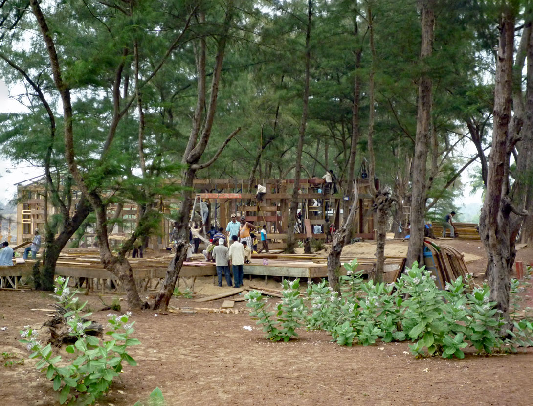 Kulissenaufbau für einen Film am Strand von Goa