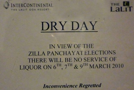 Wie überall in Indien gibt es natürlich auch hier immr wieder eine Überraschung. Nachdem am 6., 7. und 9. März kein Alkohol ausgeschenkt wurde, weil Wahlen in Goa waren gab es also auch kein Bier zum Abendessen. Für die Happy Hour mussten wir tricksen und uns auf andere Art eine Flasche Rum und Cola besorgen. Das geht natürlich in Indien immer. Die Zutaten konnten wir dann wenigsten auf unserem Balkon mixen. Als Überraschung werten wir schon gar nicht mehr, wenn der Strom oder das Internet plötzlich ausfällt und wir im Dunkeln stehen oder die gerade geschriebene Mail ins Nirwana versinkt. Überrascht worden sind wir dann allerdings noch zweimal: Einmal, als das schöne offene Restaurant geschlossen wurde und stattdessen das Frühstück im "Fridge" serviert wurde. Und das zweite Mal, als die Buffets komplett eingestellt wurden, weil zu wenige Gäste im Hotel sind. Jetzt können wir zwar á la carte bestellen, was wir wollen, aber das ist bei den indischen Gerichten nicht so einfach, weil man nichts sieht, sich nichts unter den indischen Namen vorstellen kann und nicht weiß, was man hinterher serviert bekommt. Das ist meistens nämlich verflixt scharf.