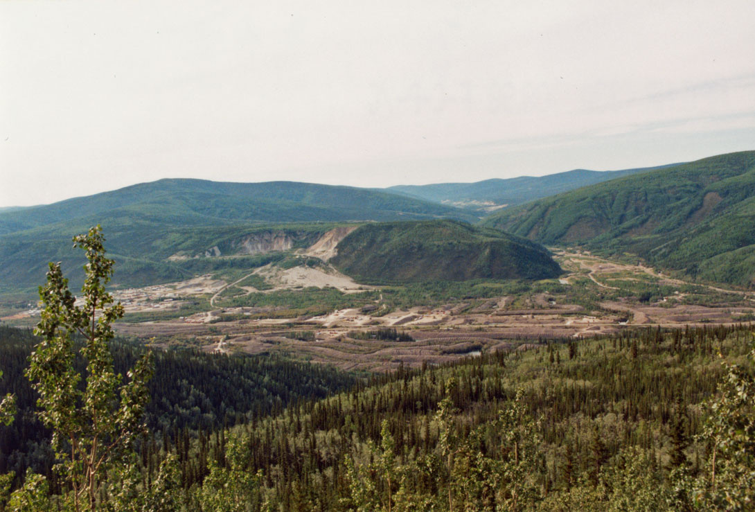 Das Gelände um Dawson City sieht aus wie ein übergroßer Regenwurmhaufen: Die ganze Gegend wurde durch die Goldwaschanlagen in den letzten 100 Jahren "verdaut" und als Geröllschlangen wieder ausgeschieden.