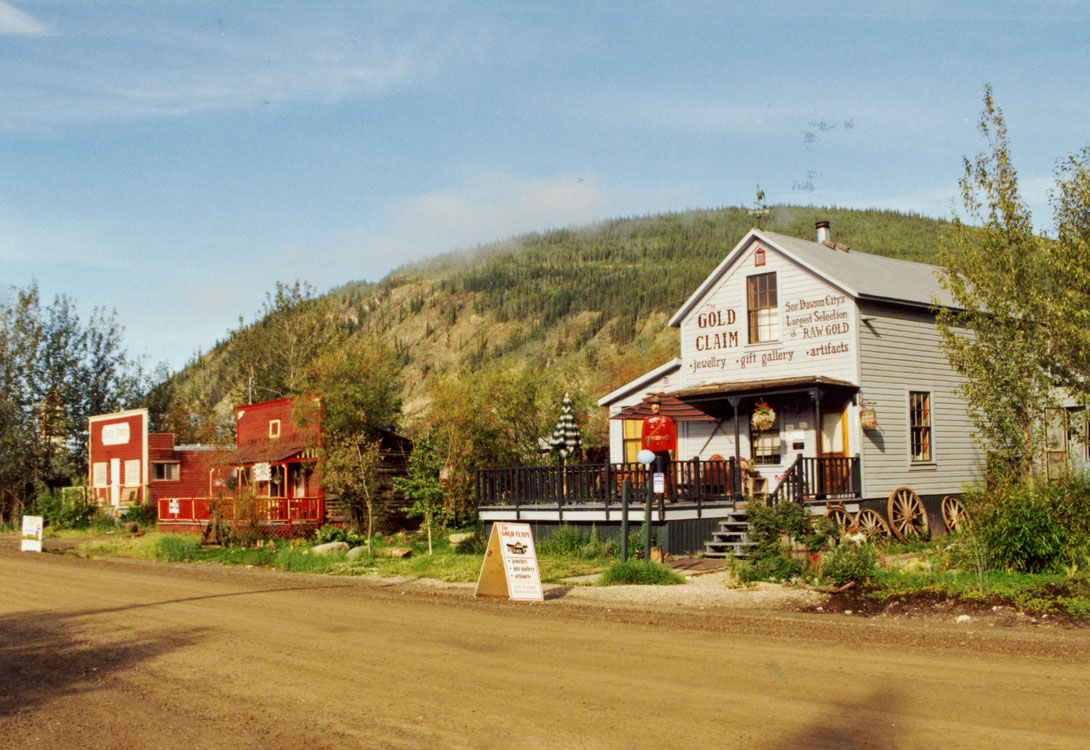 Sie werden überrascht sein, wenn Sie nach Dawson City hineinkommen. Der Ort ist sicher ganz anders als Sie sich das vorstellen. Es gibt keinen Asphalt, sondern nur eine Sandpiste und manchmal hölzerne Boardwalks an der Seite.