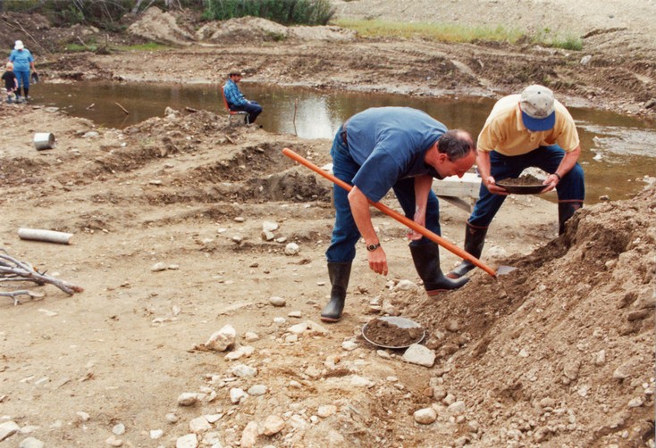 Und was ist das Faszinierende daran? Was zieht einen immer wieder dahin? Die Nuggets. Es könnte ja sein, dass man einen erwischt, der so groß ist, dass man ein ganzes Jahr nicht zu arbeiten braucht...