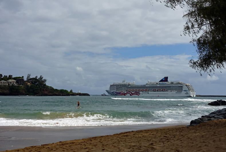 Das ist die einfachste Lösung. Hier fährt ganzjährig die "Pride of America" von der Norwegian Cruise Line und läuft die vier beliebtesten Inseln an. Das Foto habe ich am Kalapaki Beach in Kauai gemacht. Auf dem Bild sehen Sie die Pride of America, die gerade den Hafen von Nawiliwili verlässt.