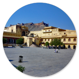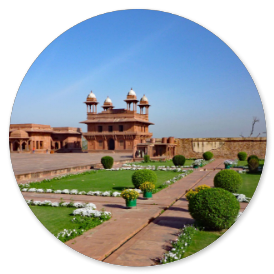ganz früh an der Festung Fatehpur Sikri vorbei, einem alten Palast