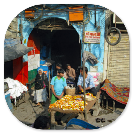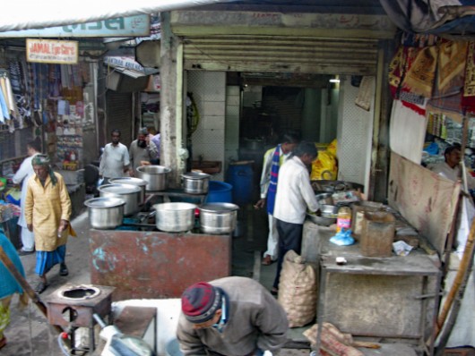 Mit 2 Bussen und zwei Reiseleitern, die ganz gut deutsch sprechen, ist heute zunächst eine Stadtrundfahrt vorgesehen. Im Gegensatz zu unserem ersten Alleingang gestaltet sich die Stadtbesichtigung mit einem Deutsch sprechenden Führer doch etwas einfacher. Um 8:30 Uhr steht nämlich unserer Reiseleiter Acay Singh vor der Tür und auf geht es mit 14 anderen zur Stadtrundfahrt. Unser Ziel ist die Freitagsmoschee in der Altstadt. Die Fahrt durch die schmutzigen Gassen mit den bunten Verkaufsständen ergibt natürlich eine malerische Kulisse. Alles ist viel interessanter und stinkt bei weitem nicht so wie in Thailand. Aber dafür begegnet uns hier viel größere Armut und alles ist viel schmutziger und voller Müll. Wir fotografieren aus dem Bus heraus und möchten am liebsten aussteigen und durch die Gassen laufen. Hier einige unserer Beobachtungen: