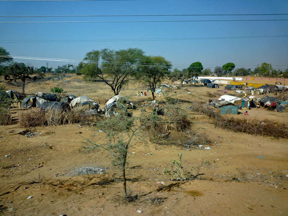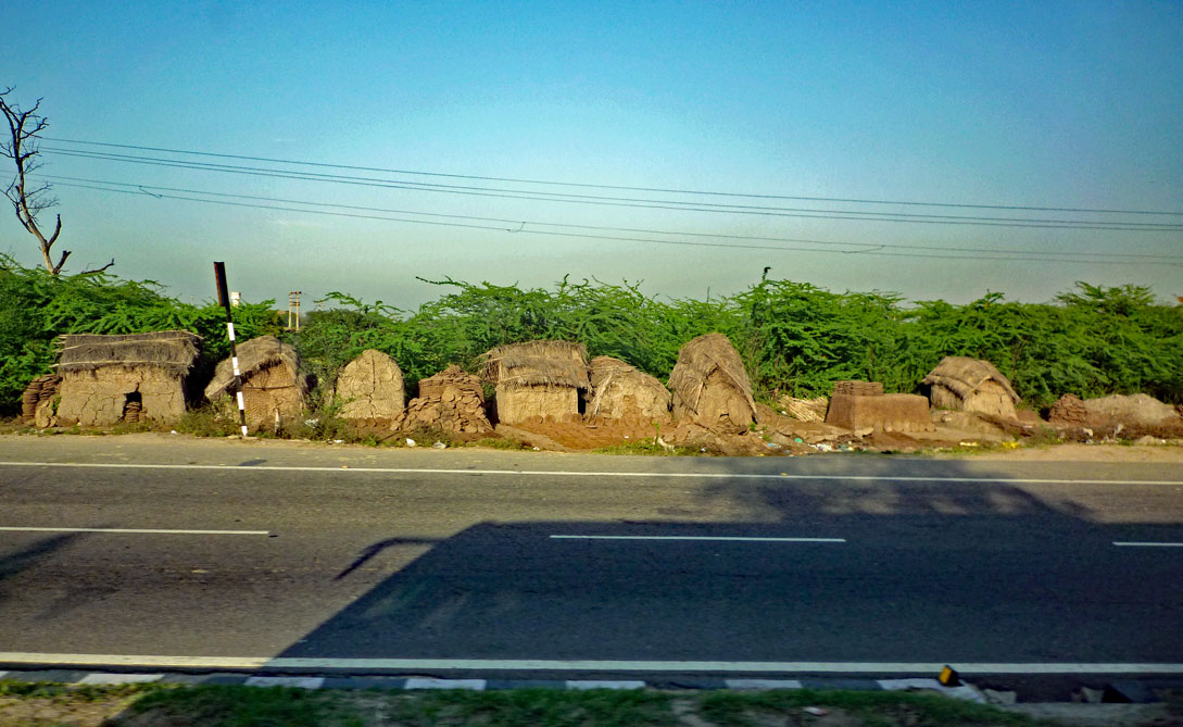 Um 14:00 Uhr ist damit die Besichtigung von Delhi zu Ende und wir machen uns auf den Weg nach Sarika, das 200 km südlich von Delhi liegt. Die Fahrt geht zunächst durch die Innenbezirke von Delhi hindurch, wobei wir immer wieder entlang der neuen Metrolinie fahren, die mit Hilfe der Russen gebaut wird. Am Rand der Straße sind dann eingerammte Stahlplatten und Spundwände zu sehen, hinter denen die Wohnhäuser stehen: