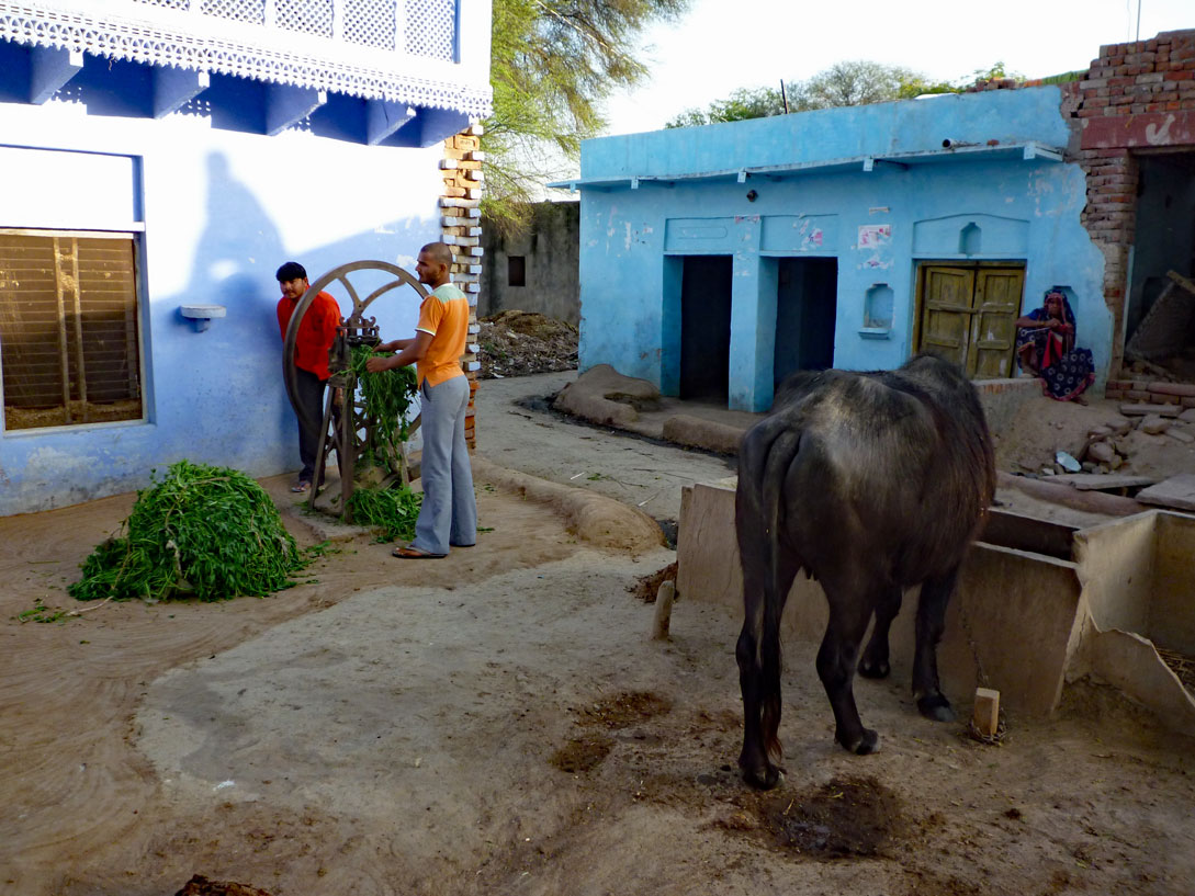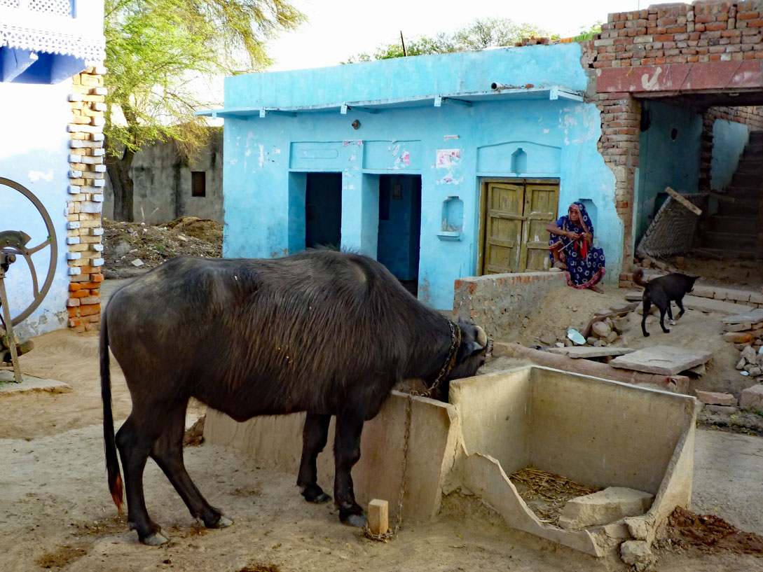 Wir machen zu Fuß einen Rundgang durch die engen Gassen und müssen verflixt aufpassen, weil es hier noch keine Entwässerung gibt, sodass wir zwischen Kamelkot, Latrinenprodukten und Hausabfällen hindurchtapsen. Kuhfladen findet man natürlich keine, weil die wegen ihres Wertes sofort von den Frauen aufgelesen und zu Brennmaterial verarbeitet werden.