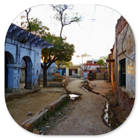 Nach 6 Stunden haben wir die 230 km geschafft und kommen um 17:00 Uhr in Mandawa an. Das ist ein Ort mit 25 000 Einwohnern am Rande der Wüste Tharr, die hier beginnt und sich bis zur pakistanischen Grenze hinzieht. Schon am Ortseingang der Shekawati-Stadt bleiben wir im Stau stecken. Unser Fahrer wartet noch eine Weile, aber dann geht nichts mehr. Wir müssen aussteigen und zu Fuß weitergehen. Hier das Video davon: