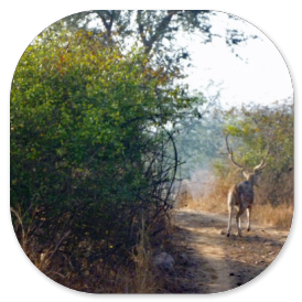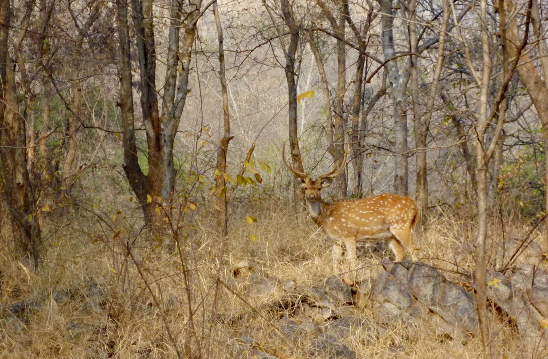 Bei Sonnenaufgang starten wir zu einer Tour mit dem offenen Jeep durch das Wildreservat, wo es noch indische Tiger geben soll, was aber natürlich ein Märchen für Touristen ist, obwohl der Wildhüter beharrlich darauf besteht. 8 Jeeps mit jeweils 5 Personen stehen vor dem Tor und warten auf das Abfahrtssignal.