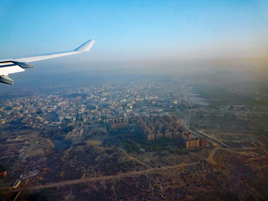 Den ersten schlimmen Eindruck von dem noch schlafenden Moloch Delhi bekamen wir bei unserer Landung am frühen Morgen auf dem Flughafen Indira Gandhi 23km vor der Stadt: Dichter gelber Smog lag über der 17-Millionen Stadt.