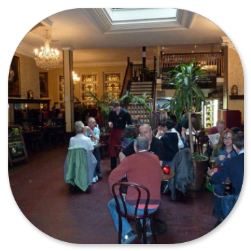 Unterwegs machen wir eine Pause im Kilmore-Hotel und sind ziemlich begeistert, denn die Atmosphäre ist doch ganz anders als in den Rasthäusern, in denen wir sonst auf den Gruppenreisen eine Toilettenpause eingelegt haben.