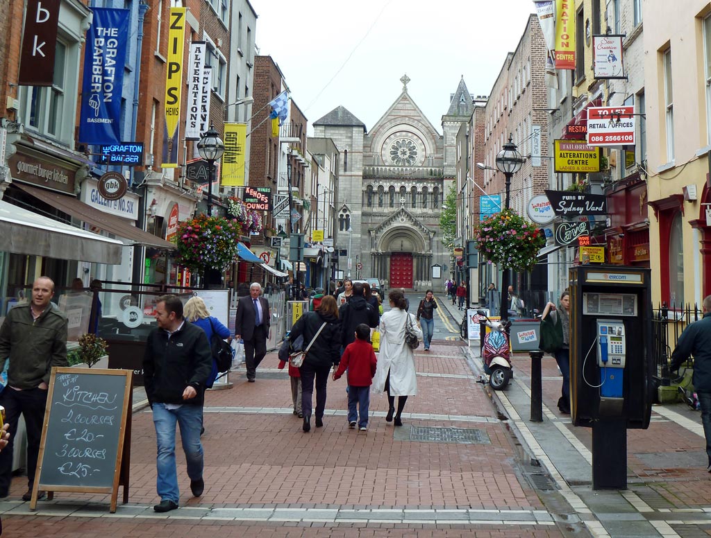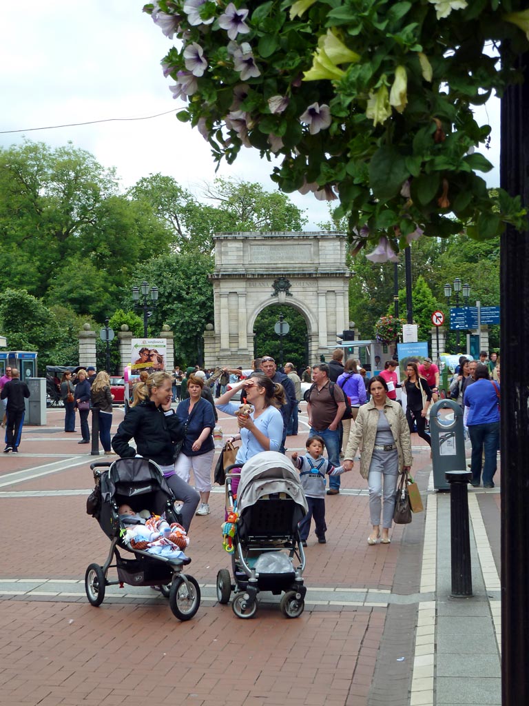 Es ist schade, dass es immer noch so schlechtes Wetter ist. In dem Fußgängerbereich um die Grafton Street begegnen wir außer vielen Touristen auch wieder vielen jungen Muttis. Wie bunt und fröhlich muss doch hier alles aussehen, wenn schönes Wetter ist.