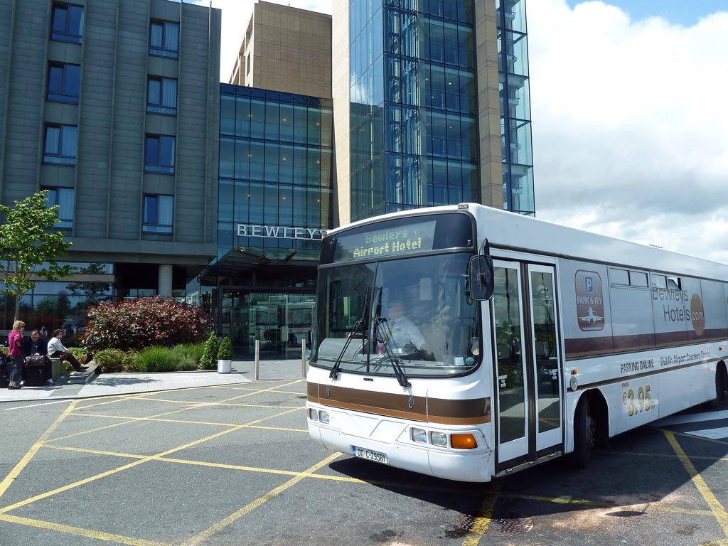 Es muss ein großes Hotel sein, denn unser Bewleys-Hotel Shuttlebus ist riesig, sodass nacheinander mehr als 30 Leute mit vollem Gepäck hineinmarschieren und trotzdem bequem sitzen.