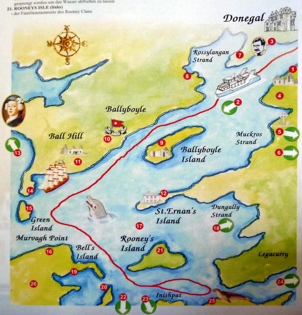 Fahrtroute mit dem Waterbus durch die Donegal Bay
