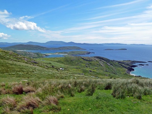 Bei der Weiterfahrt über die Dingle-Halbinsel über die enge Küstenstraße sieht man Beehive-Häuser aus dem 12. Jahrhundert und viele verlassene Häuser oder Ruinen zwischen den "Hungersnot"-Hecken.