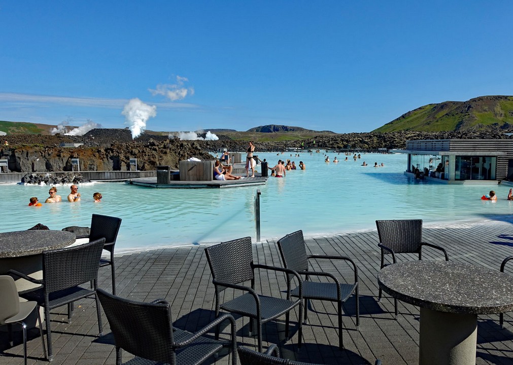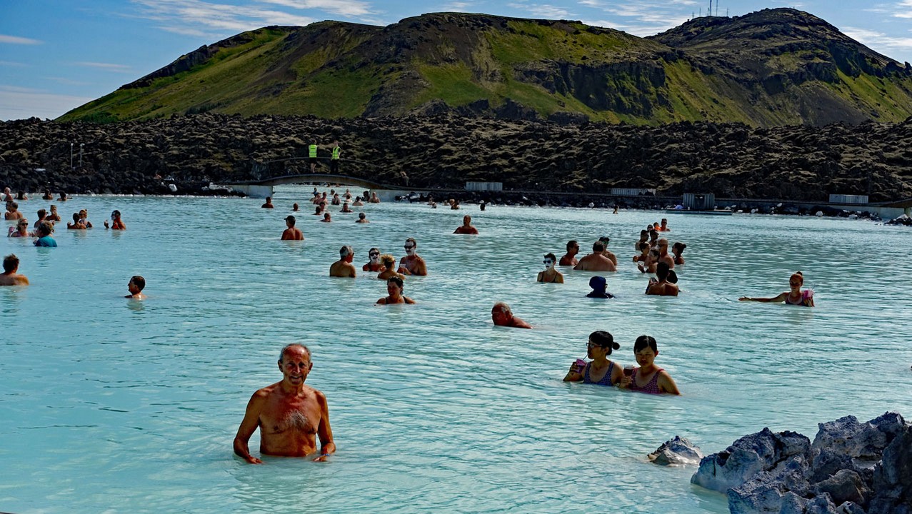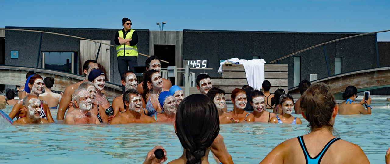 Kurz vor 14:00 Uhr sind wir an der Blauen Lagune und brauchen zum Glück nicht zu warten, weil uns Angelika als Gruppe für 14:15 Uhr angemeldet hat.