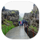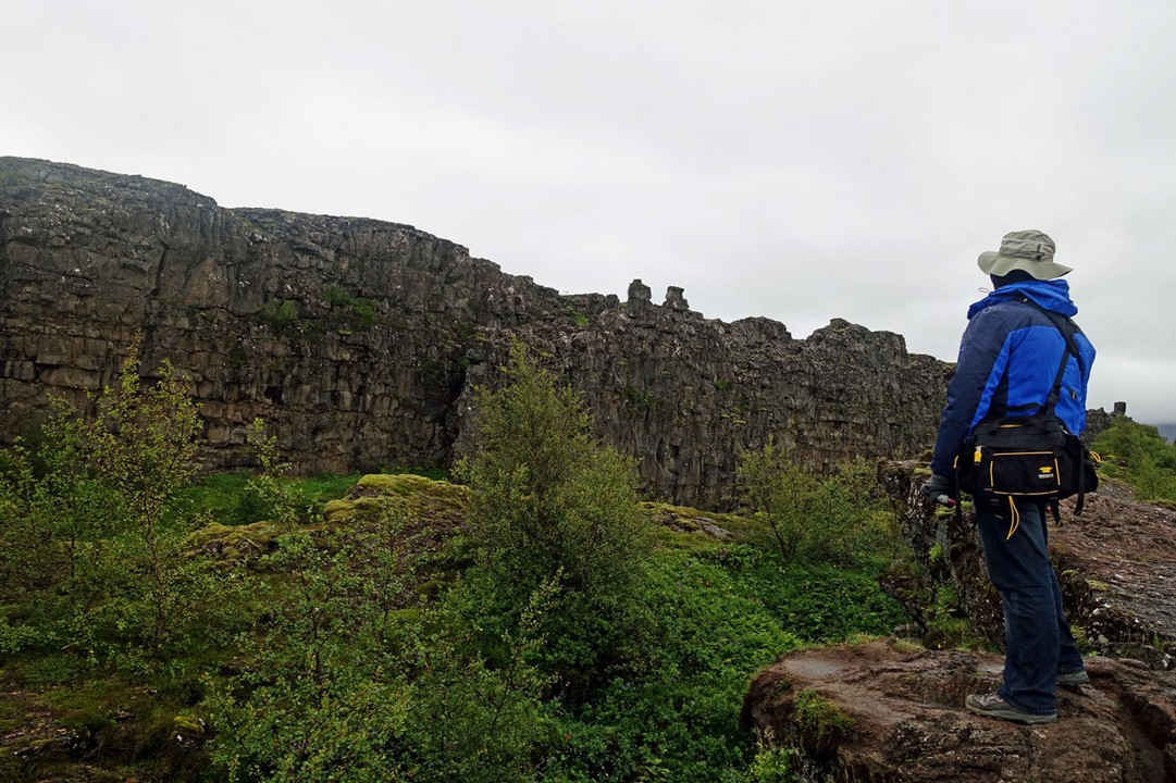 hier aufeinander treffenden Kontinentalplatten von Amerika und Europa errichtet hat. Das ist natürlich nur eine Touristenattraktion und nicht wirklich nachvollziehbar. Aber die Ausflugsbusse fahren natürlich hier hin - wie wir auch - und die Touristen machen ein Foto, bei dem sie sich so hinstellen, als würden sie die Brücke auf Händen tragen. Der Spalt ist ganz schön breit, der sich bei einem Erdbeben aufgrund der Kontinentalplattenverschiebung ergeben hat.