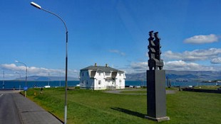 Von unserem Hotel Klettur aus ist die nächste Haltestelle die Nr.15, das ist das Höfti House. Das Gebäude dient als Gästehaus der isländischen Regierung und ist dadurch bekannt geworden, dass sich 1986 Präsident Reagan und Michail Gorbatschow trafen, um den "kalten Krieg" zu beenden. Als wir dort ankommen, finden wir den Haltepunkt des Busses erst gar nicht, weil die Schilder so tief angebracht sind.