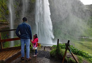 Auf der Rückfahrt kommen wir dann zum nächsten Wasserfall, dem Seljalandsfoss, an dem wir bereits am Vormittag vorbeigefahren sind.