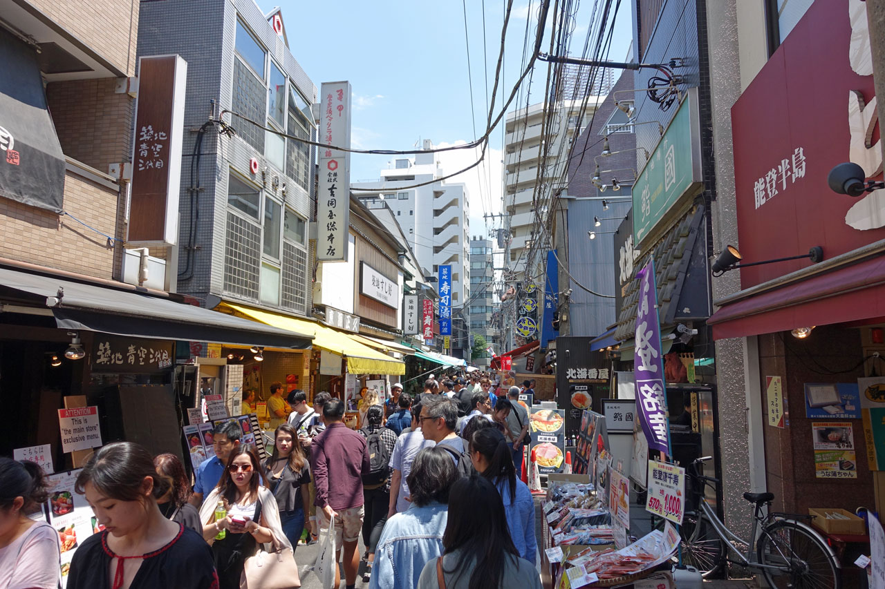 Stationen weiter sind wir an unserem heutigen Ziel, dem Tsukiji