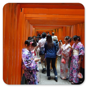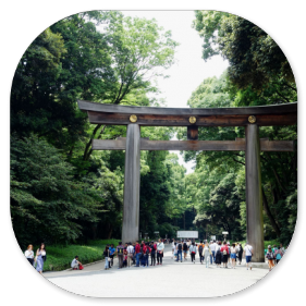 Viele Schulklassen besuchen den Schrein und lernen dabei Fremdsprachen, weil sie die ausländischen Touristen interwiewen.