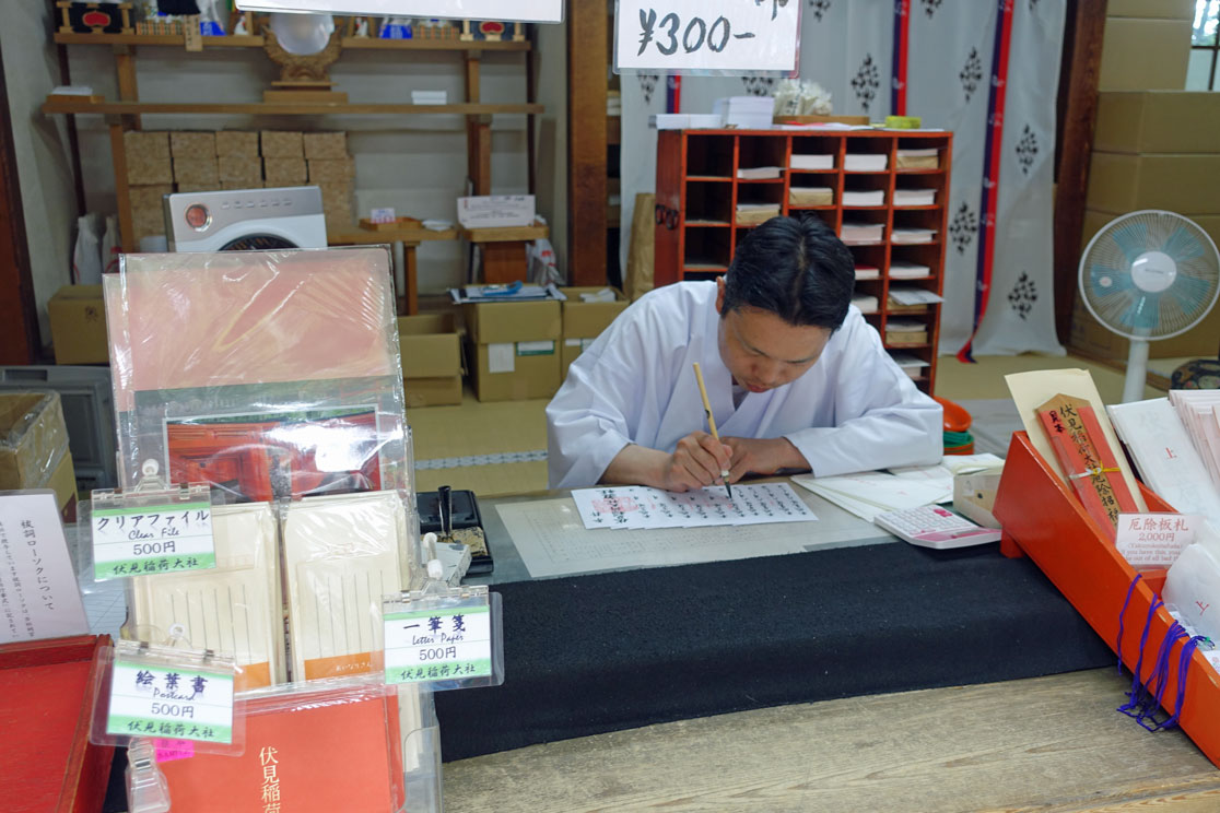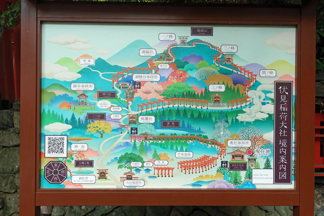 Obwohl wir für heute eigentlich schon genug Schreine gesehen haben, kündigt Shin-itchi für den Nachmittag noch einen weiteren Besuch in einem Schrein an. Aber immerhin machen wir erst einmal Mittagspause am Bahnhof von Kyoto. Den kennen wir schon von unserem ersten Besuch und begeben uns deshalb auf die Suche nach einem gemütlichen Café. Aber damit sieht es schlecht aus hier in Kyoto - wie übrigens überall in Japan - , sodass wir wir uns bei Starbucks mit einem Cappuccino und einem Stück Käsekuchen zufrieden geben müssen. Immerhin reicht es anschließend noch zu einem Eis bei "Baskin Roberts", das wir von Amerika kennen. Pünktlich um 14:15 Uhr sind wir wieder am Treffpunkt und fahren zum Fushimi-Inari-Schrein, dem Schrein mit den 10 000 Toren.